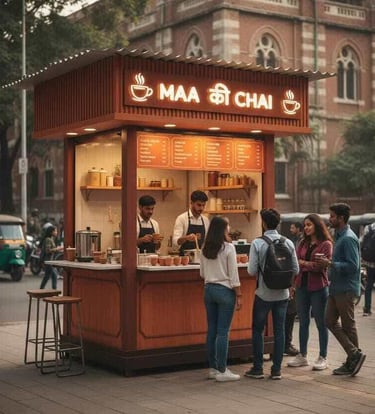 Start your tea stall franchise in just 100 sq ft. Perfect for tea kiosk franchise in colleges, offices, railway stations, and high-footfall areas.